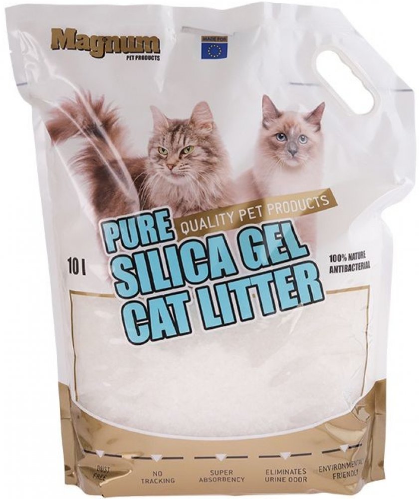 Vysoká savost a regulace zápachu Milióny mikroskopických pórů v každém krystalu nasají tekutinu jako houba. Zápach a nečistoty jsou zachyceny uvnitř. Tvar a bezprašnost Speciální velikost a tvar krystalů pomáhá, že se podestýlka Magnum nelepí na srst a tlapky a díky bezprašnosti nedráždí oči a nos kočky. 100% přírodní a bezpečný Podestýlka Magnum je 100% přírodní, podléhající rozpadu, netoxická a šetrná k životnímu prostředí. Ekonomický a nízká spotřeba Vzhledem k vysoké savosti a dlouhé době použitelnosti podestýlky Magnum, zaručí nižší spotřebu ve srovnání s tradičními podestýlkami. Návod k použití: 1. Naplňte čistou kočičí toaletu podestýlkou Magnum do výšky 3,5 - 4 cm. 2. Umístěte toaletu na suché a teplé místo. 3. Pro udržení čisté a svěží toalety odstraňujte každý den suché exkrementy. 4. Celý obsah podestýlky vyměňujte v časovém intervalu dle návodu na obalu. 5. Použitou podestýlku vyhazujte do kontejneru s bio odpadem. Speciální sdělení: Pokud je podestýlka Magnum pro Vaši kočku novinkou, můžete jí přidat ke staré podestýlce. Pro více než jednu kočku je vhodnější měnit podestýlku častěji než použít více podestýlek najednou. Důležité sdělení: Těhotné ženy a lidé se sníženou imunitou by si měli ihned po manipulaci s podestýlkou umýt ruce.