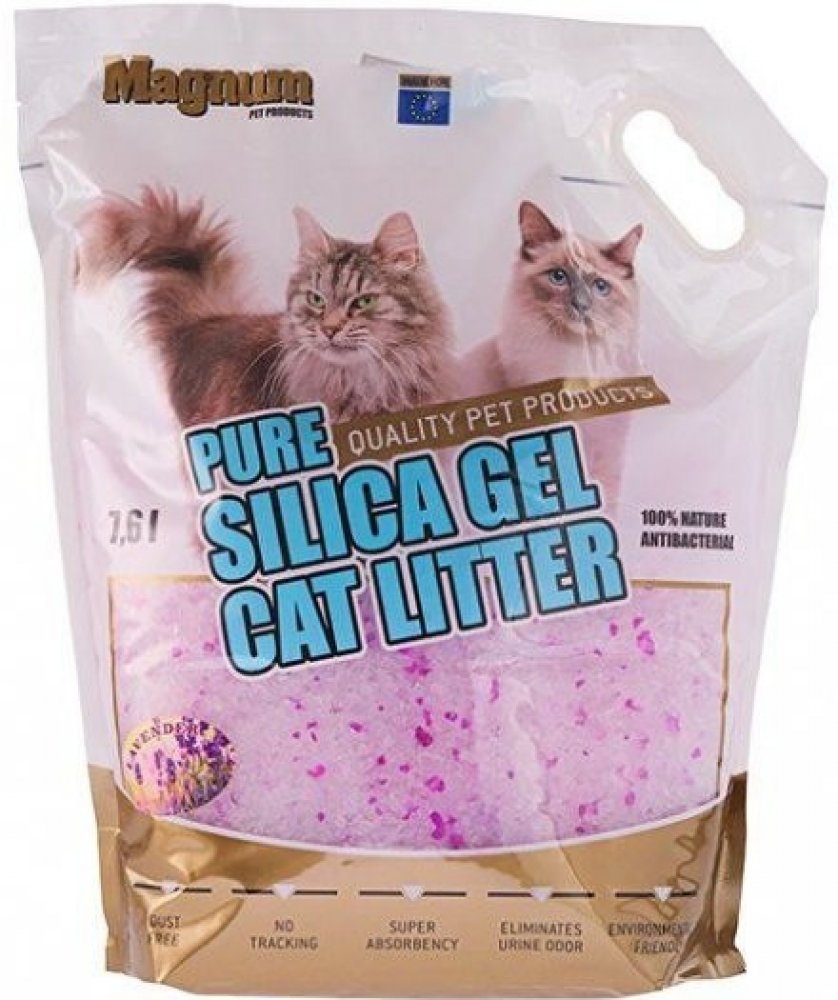 Silikagelová podestýlka Magnum Silica pro kočky s vůní levandule je 100% přírodní, podléhá rozpadu. Vzhledem k vysoké savosti a dlouhé době použitelnosti podestýlky zaručí nižší spotřebu ve srovnání s tradičními podestýlkami.