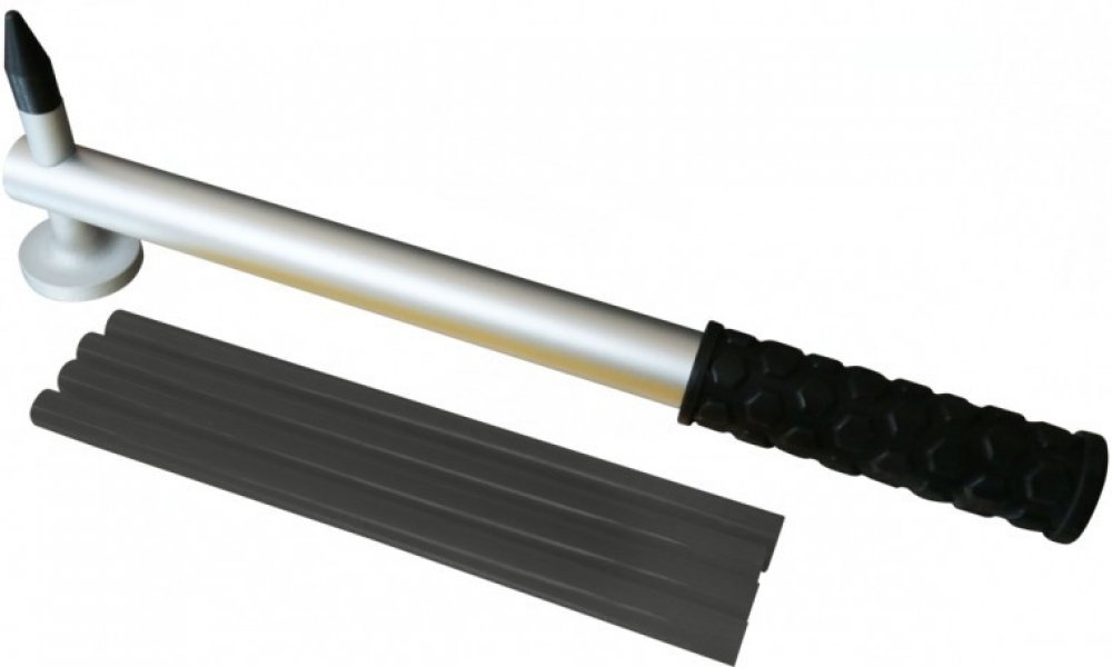 Kladivo na opravu promáčknutí metodou PDR. Slouží k opravě promáčknutí po krupobití, neopatrném parkování a podobně. Hliníkové kladivo s tvrdou nárazovou plochou na jedné straně a pryžovým hrotem na opačné straně. Ergonomická rukojeť s pogumováním perfektně padne do ruky, nevyklouzne a práce s kladivem bude opravdu bezproblémová. Produkt je dodáván spolu se 4ks lepících tyčinek pro vytahování jame...