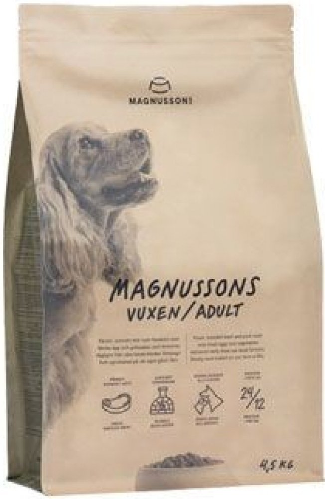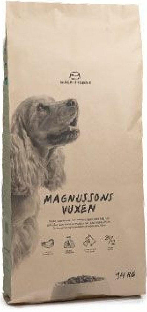 Magnusson pro dospělé pro všechna plemena s běžnou aktivitou hovězí Magnusson 4.5 kg prémiové suché Grainfree 24 % obiloviny ze Švédska nízká (<200 mg) 12 % 3.0 % 1.3 % 1 % 6.5 % vysoká deklarováno (>40%) standardní základní základní možné částečná (země výroby)