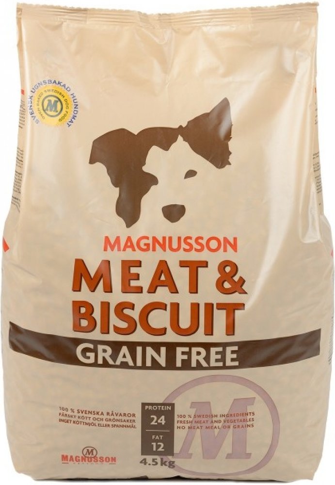 MG Meat&Biscuit Adult je kompletní krmivo pro dospělé psy všech plemen, vyráběné ve Švédsku z čerstvých regionálních surovin. Základ tvoří čerstvé hovězí a vepřové maso doplněné o vejce z farem a zeleninu, které přirozeně dodávají důležité vitamíny a minerály.