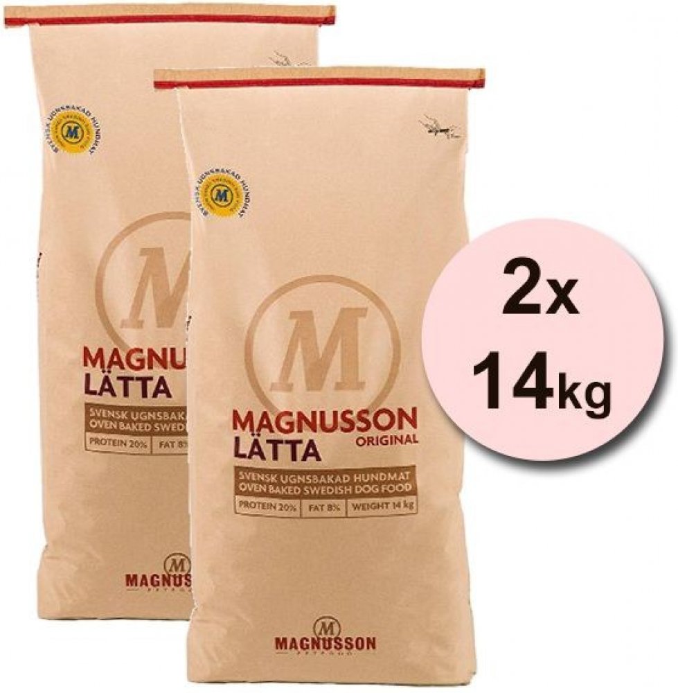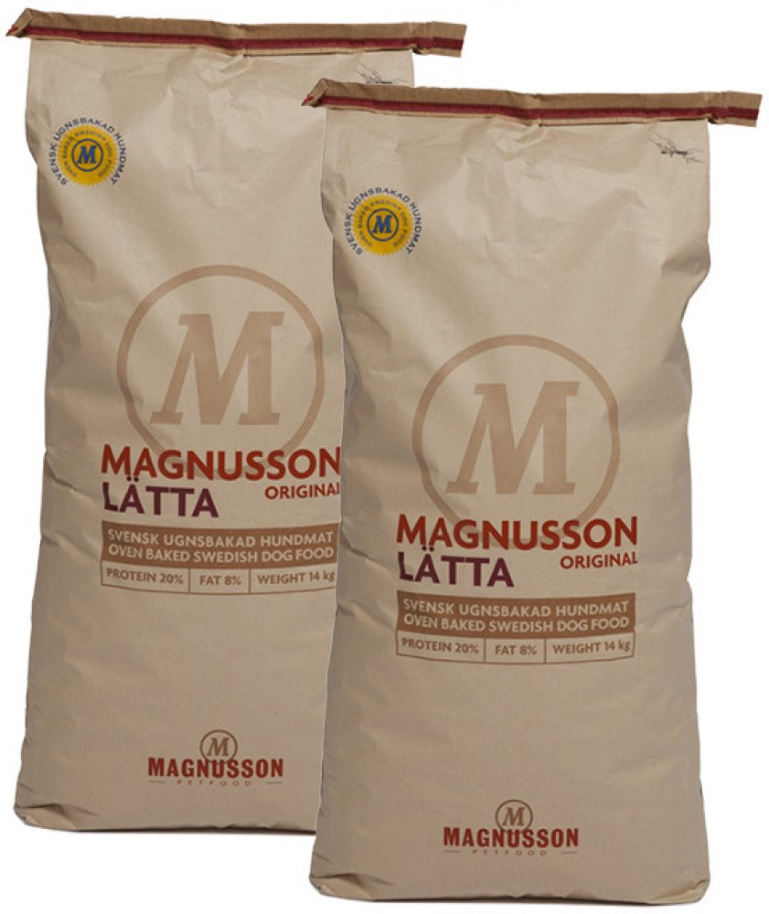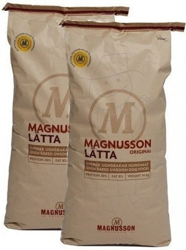 Magnusson Original LÄTTA je kompletní krmivo pro dospělé psy s nízkou aktivitou, které mají tendenci k nadváze. Original Lata je čisté přírodní krmivo, bez zbytečných umělých, chemických látek. Krmivo je vyrobeno z regionálních švédských surovin, které jsou pro kvalitu krmiva zásadní.