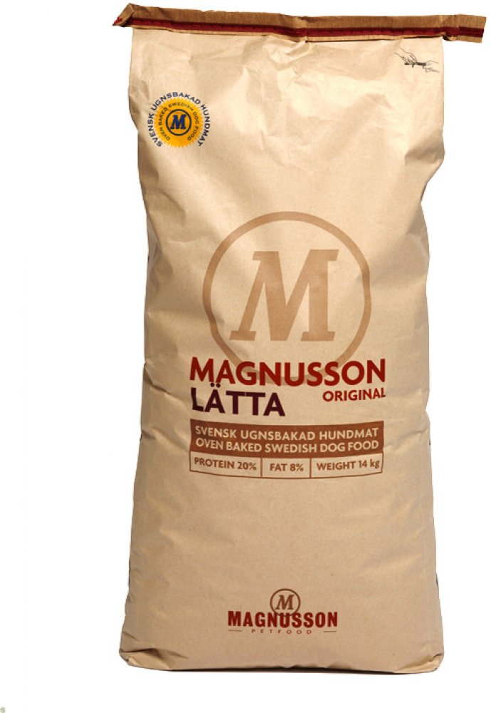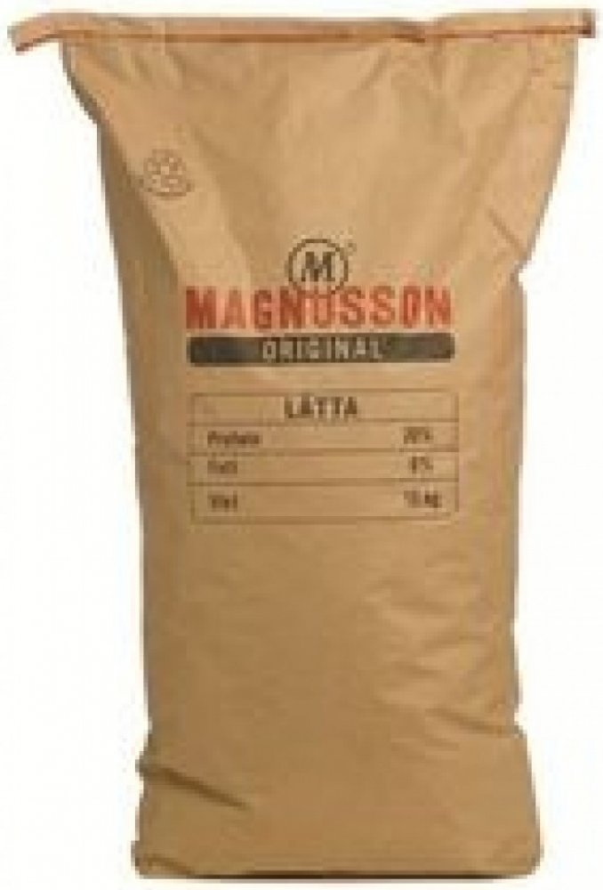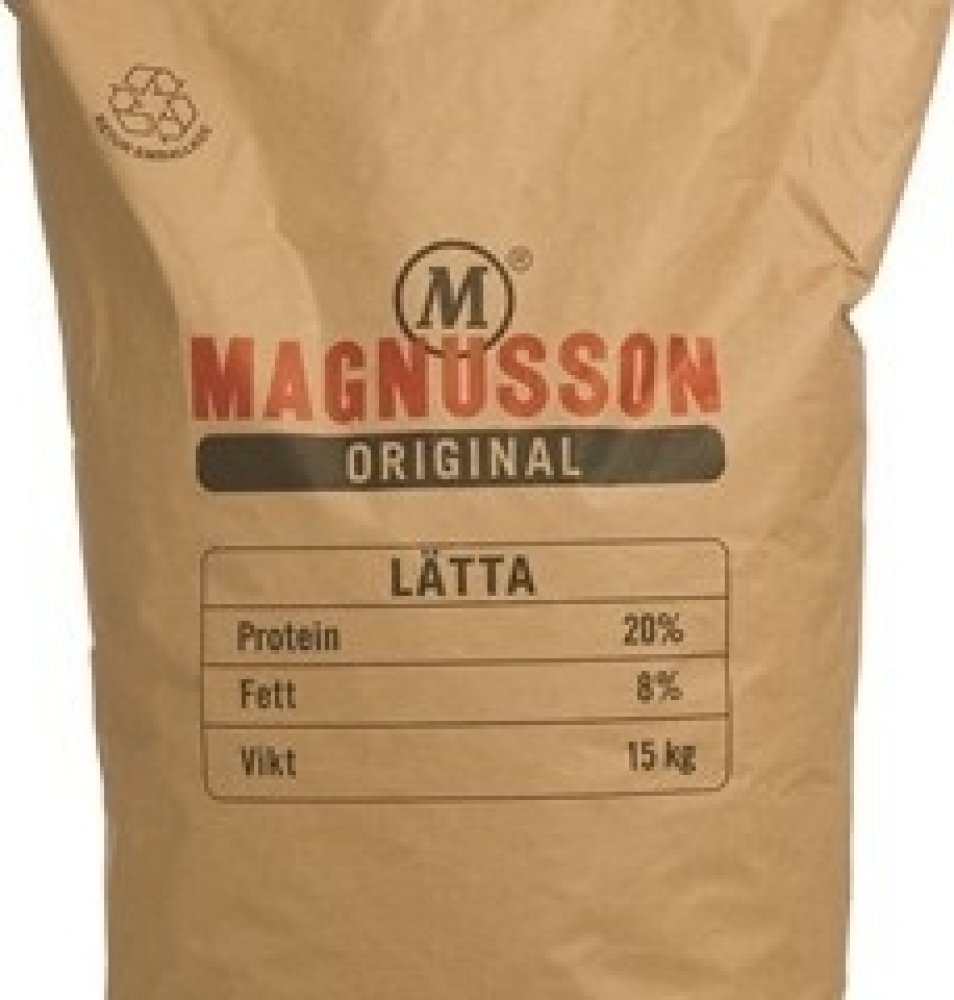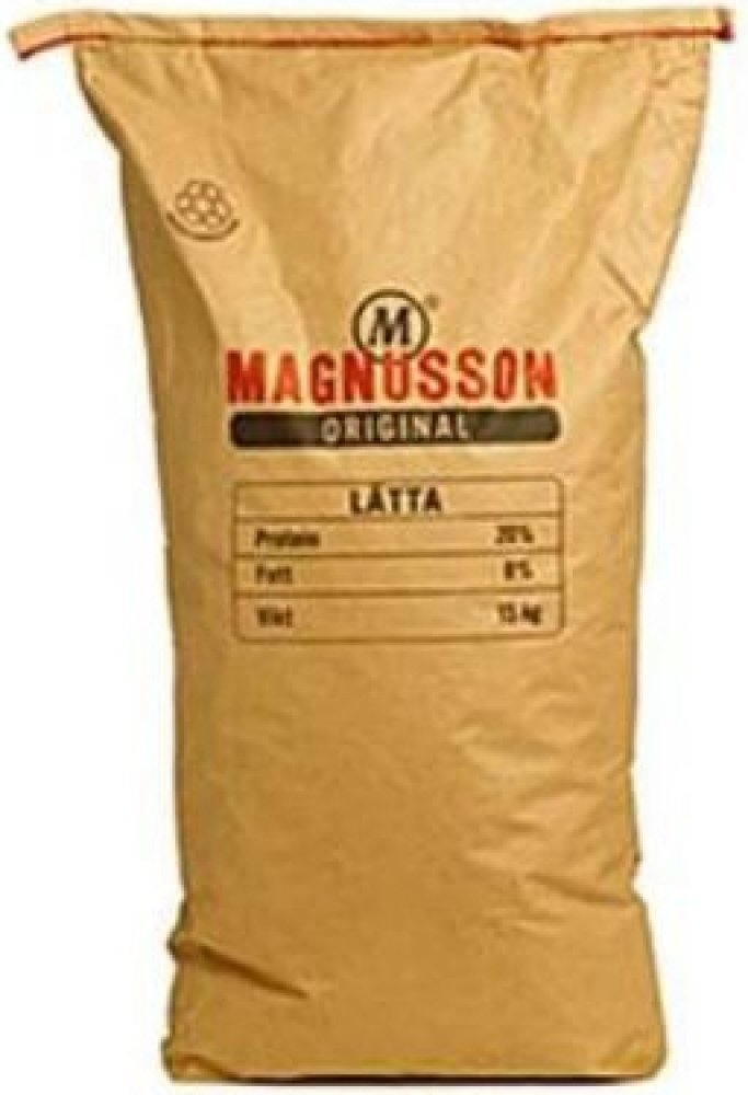 Magnusson Original LÄTTA je kompletní krmivo pro dospělé psy s nízkou aktivitou, které mají tendenci k nadváze. Original Lata je čisté přírodní krmivo, bez zbytečných umělých, chemických látek. Krmivo je vyrobeno z regionálních švédských surovin, které jsou pro kvalitu krmiva zásadní.