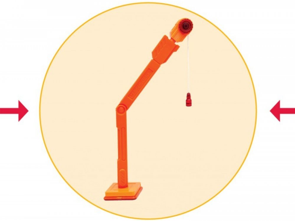 Rameno jeřábu s oddělitelnou magnetickou kladkou na lanku. Tou je možné zvedat různé kovové a magnetické předměty, nejčastěji ostatní Magformers dílky.