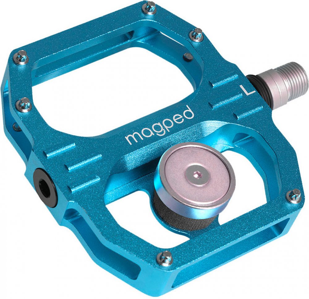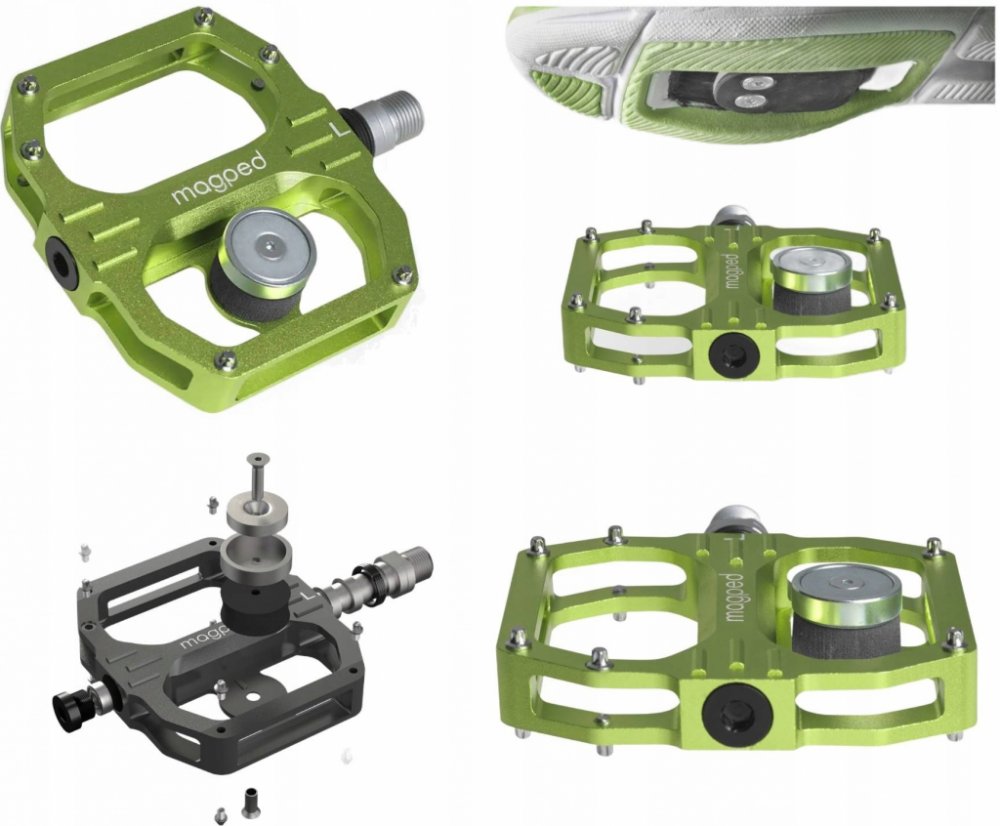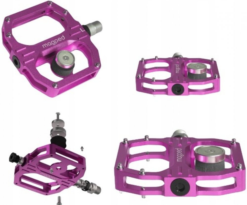 Pedály Magped jsou moderní a vysoce kvalitní platformy vyrobené z lehkého CNC obráběného hliníku s CrMo osou. Hmotnost včetně patentovaného systému magnetů je pouze 458 g (200N magnet, informace výrobce) na pár.