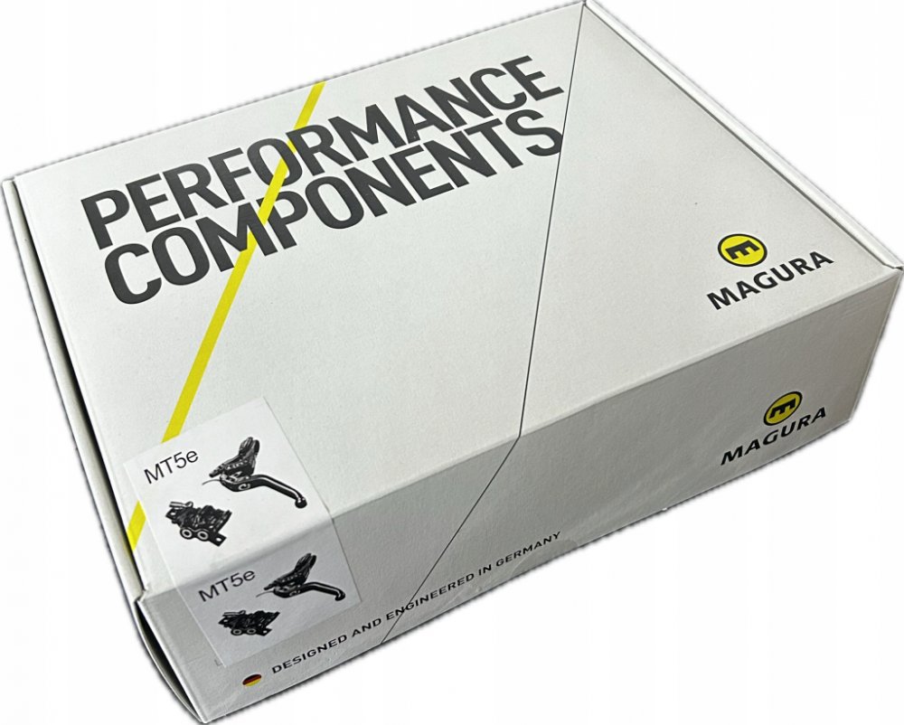 Jeden set sestává z Carbotecture brzdové páky, která drží hmotnost přijatelně nízko a je uzpůsobena pro 2-3 prsty. Z páčky je vyvedený kabel pro funkci odpojování elektrického pohonu kola (brzda je typu Normally Open). Další částí setu je vedení naplněné Magura Roya...