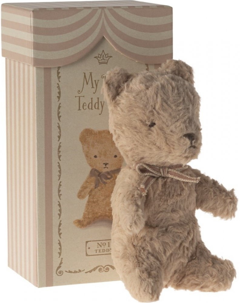 Maileg Plyšový medvídek My First Teddy – Powder, béžová barva, textil. Tento malý, heboučký plyšový medvídek z rodinky Maileg má roztomilosti na rozdávání.
