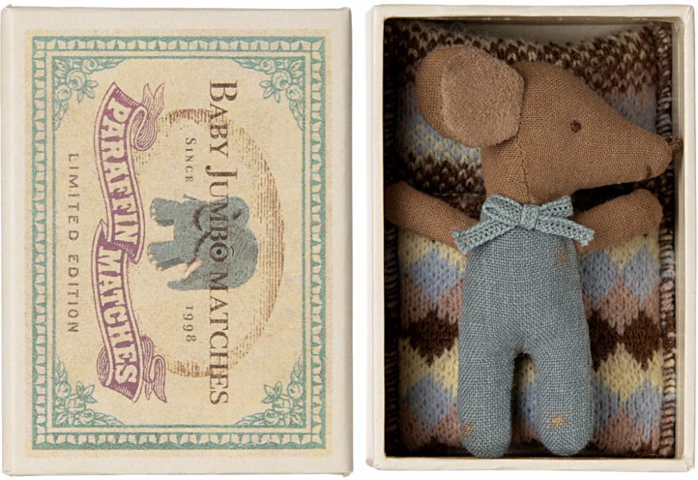 Tato myš je připravena na hodiny hraní a spinkání ve své malé krabičce od sirek. Oblečení a ložní prádlo jsou vyrobeny z měkkých látek s jedinečnými potisky a krásnými barvami.