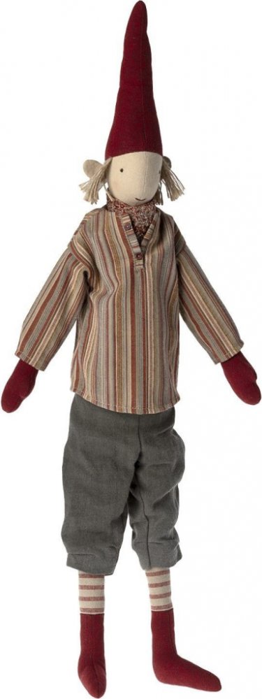 Maileg Vánoční skřítek Pixy kluk červená barva textil 61 cm