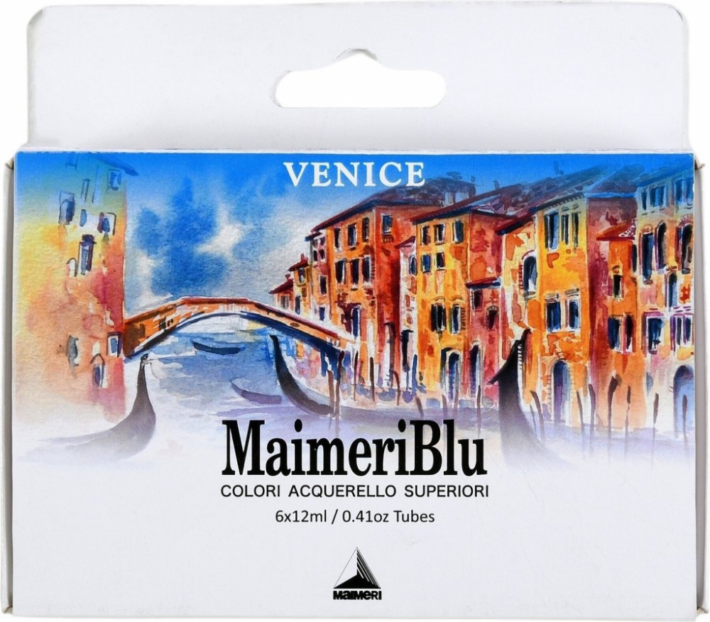 Tematická sada 6 vodových barev ve 12 ml tubách. Souprava je vytvořena ve výběru barev, které splňují různé potřeby vyplývající z kreativity umělce. Sady obsahují barvy, které přirozeně granulují, aby splňovaly vysoké požadavky kladené na tyto barvy. Barvy MaimeriBlu se vyznačují absolutní čistotou pigmentů, které spolu s arabskou gumou tvoří výslednou směs. Nepostřehnutelné, transparentní, čisté. Žádné míchací prášky ani přísady. Nic neharmonizuje ani nesynchronizuje posun mezi jednotlivými odstíny. Skutečná hodnota spočívá v průhlednosti barev a svěžesti jejich vymývání. Právě bělost papíru osvětluje tento typ malby. Světlo je za barvou. Jednopigmentové barvy, transparentní, jasné a zářivé. Dokonalost a čistota barev umožňuje neomezené množství lazur. Nejvyšší stupeň čistoty a kvality pigmentu. Pečlivě vybráno pro vrstvení, aby se vytvořilo ostré a dokonalé tónové překrytí. Dokonale koncentrované pigmenty, které zajistí, aby se každá barva jevila jako věrná a jasná. Pigmenty rozptýlené v dokonale vyvážené směsi přírodní arabské gumy Kordofan a glycerinu, které se navzájem doplňují a zaručují pevnou přilnavost za sucha i za mokra a pronikání správného množství barvy na povrch. Mimořádně transparentní. Každá jednotlivá barva může poskytnout mimořádné lazury a intenzivní, hluboké odstíny, které působí jednotně, aby definovaly i ty nejmenší detaily s mohutnou chromatickou silou. Průhledné barvy, poloprůhledné barvy, neprůhledné barvy, dokonce i barvy, které granulují ve své původní formě, bez zásahů, které by změnily jejich vlastnosti. MaimeriBlu se pečlivě zpracovává řemeslnými metodami v každé fázi výroby a prochází individuálními kontrolami. Pigmenty se zpracovávají v zušlechťovacích strojích, jejichž nastavení jsou přesně vyladěna, aby se dosáhlo správné rovnováhy mezi jemnou zrnitostí a čistotou barvy. Rovnoměrná velikost zrna: 5 mikronů.