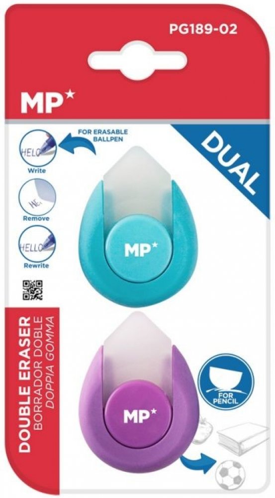 Sada obsahuje 2 ks gumy pro gumovací pera. Barva modrá a růžová. Psaný text gumovacím perem je možné vymazaat a znovu přepsat. Vhodné do školy, kanceláře nebo na domácí použití.