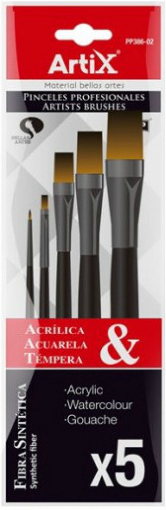 Sada profesionálních syntetických štětců vhodných na akryl, akvarel a temperu nebo kvaš. Sada obsahuje 4ks ploché č.20, 15, 10, 5 a 1ks kulatý č.2. Doporučení: Po použití štětce vyčistěte teplou vodou a mýdlem. Potom uhlaďte a vytvarujte štětiny. Štětce vždy skladujte štětinami nahoru.