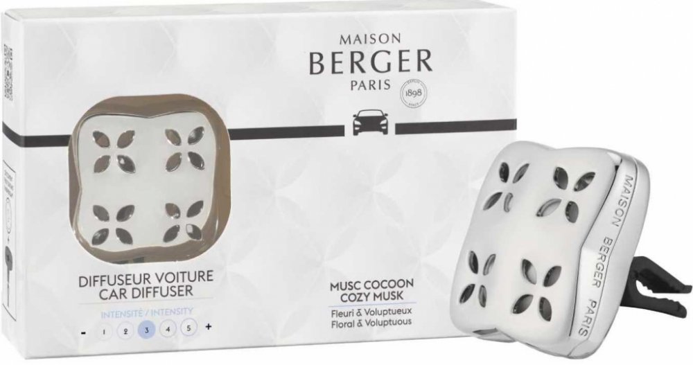 Vůně Cozy Musk (příjemné pyžmo) je vůní tohoto ikonického clipu do auta, který zaujme svou jednoduchostí a elegancí. Patří do kolekce lamp COSY.Vydejte se na jemný a velkorysý čichový zážitek s Cozy Musk do auta ve stříbrné barvě. Jeho obklopující design jemně rozptyluje vůni a proměňuje každou cestu v čistý okamžik pohody.Návrhář této kolekce je NávrhářDe VogDesignová agentura sídlící v Paříži, De Vog považuje objekt a jeho formu za vektor pokroku a emocí. Design je chápán především jako smyslová podpora. To je důvod, proč De Vog staví materiál do středu svého přístupu. Kolem umění žít a kosmetiky se podepsala velkými jmény: Lancôme, Guerlain, Hediard, Fauchon, Maxim's, ale již několik let také Maison Berger Paris. Některé z ikonických lamp značky byly také přepracovány společností De Vog, aby znovu získaly svůj moderní vzhled a zůstaly v souladu s dobou.Provonění: 4 týdnyCosy Musk je skutečnou pozvánkou na cestování. Tento stříbrný clip navržený společností DeVog, inspirovaný designem rámu na lampě Berger ze stejné kolekce, dodá vašemu vozidlu nádech kultivovanosti.Parfém Cozy Musk odhaluje čisté a uklidňující čichové složení. Horní tóny se otevírají svěžestí pomerančového květu, mísícího se v jemném srdci římského heřmánku. V pozadí přinášejí bílé pižmo dotek sladkosti a obklopují váš prostor vřelou a uklidňující atmosférou.Díky dodávané keramické náplni tento difuzér do auta zajišťuje nepřetržitou difuzi po dobu přibližně 4 týdnů. Je ideální pro ty, kteří chtějí ve svém vozidle vytvořit útulnou a relaxační atmosféru.Název výrobce: MAISON BERGER PARIS Adresa výrobce: Route d'Elbeuf - B.P. 21 - 27520 BOURGTHEROULDE INFREVILLE - France.Kontakt: contact@maisonberger.frVyrobeno ve Francii