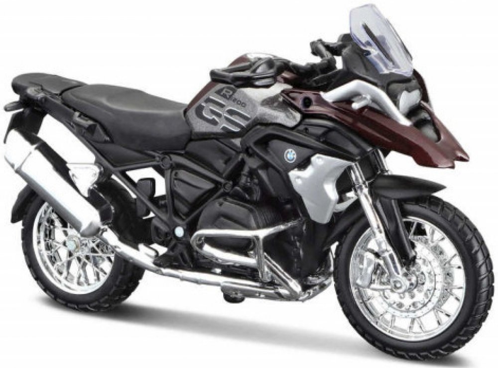 Kovový model motorky BMW R 1200 GS 2017 značky Maisto v měřítku 1:18. Motorka má délku cca. 13 cm, šířku ( včetně řídítek ) cca. 5 cm.Model motorky má odpruženou zadní vidlici. Model motorky je na podstavci, který lze odšroubovat.