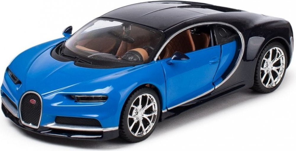 Kovový model auta 1:24 Maisto 31514 Bugatti Chiron nejen pro sběratele. Model je v detailním provedení a má otevíratelné dveře. Barva modelu je modrá a je přibližně 19 cm velký.