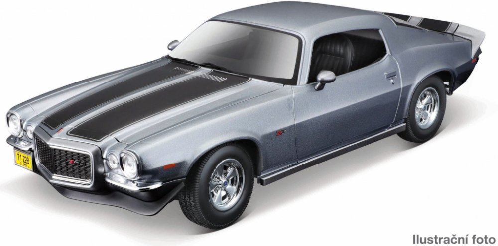 Kovový model auta 1:18 Maisto 31131 Chevrolet Camaro 1971 nejen pro sběratele. Model je v detailním provedení na plastovém podstavci. Barva modelu je šedá.