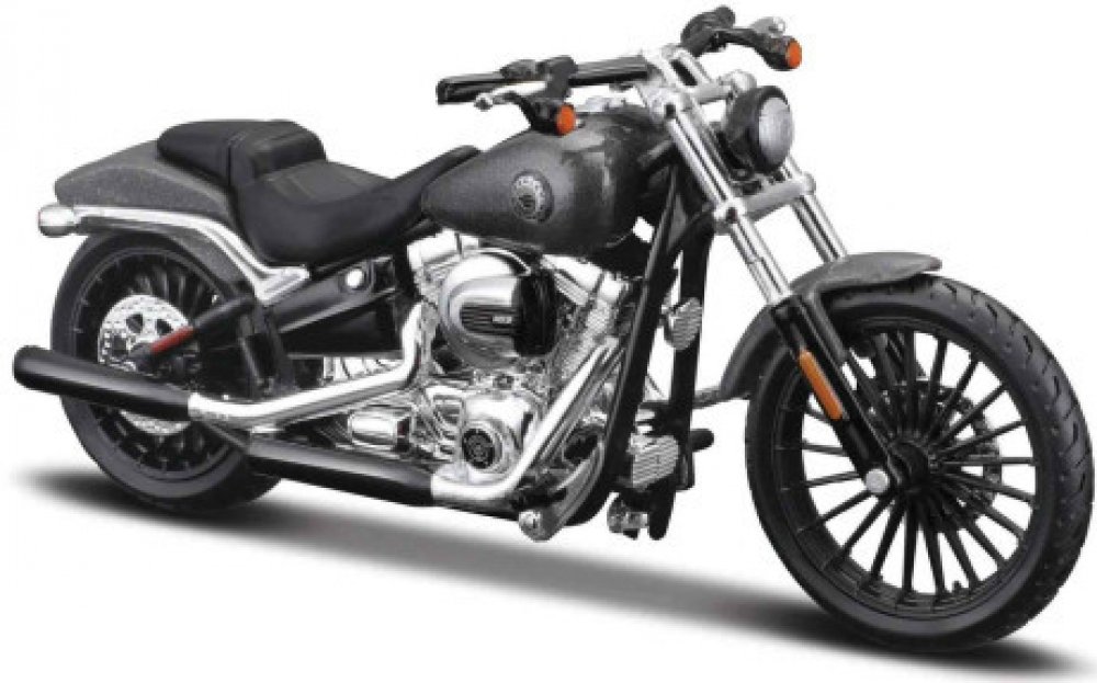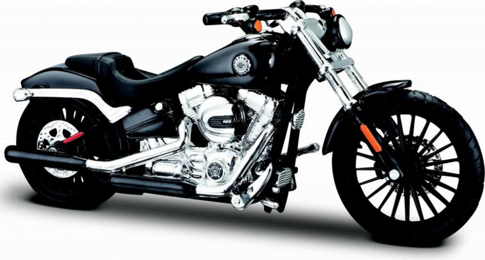 Kovový model motorky Harley Davidson Breakout (2016) značky Maisto v měřítku 1 : 18. Motorka má délku cca. 13 cm, šířku (včetně řídítek) cca. 5 cm.Model motorky má odpruženou zadní vidlici. Model je přišroubován na podstavec a balen v dárkové krabičce.Balení mí rozměr: 17,8x10,2x7cm.