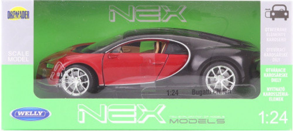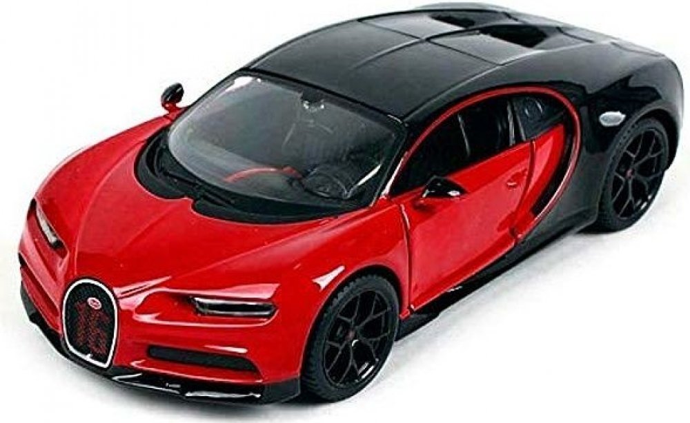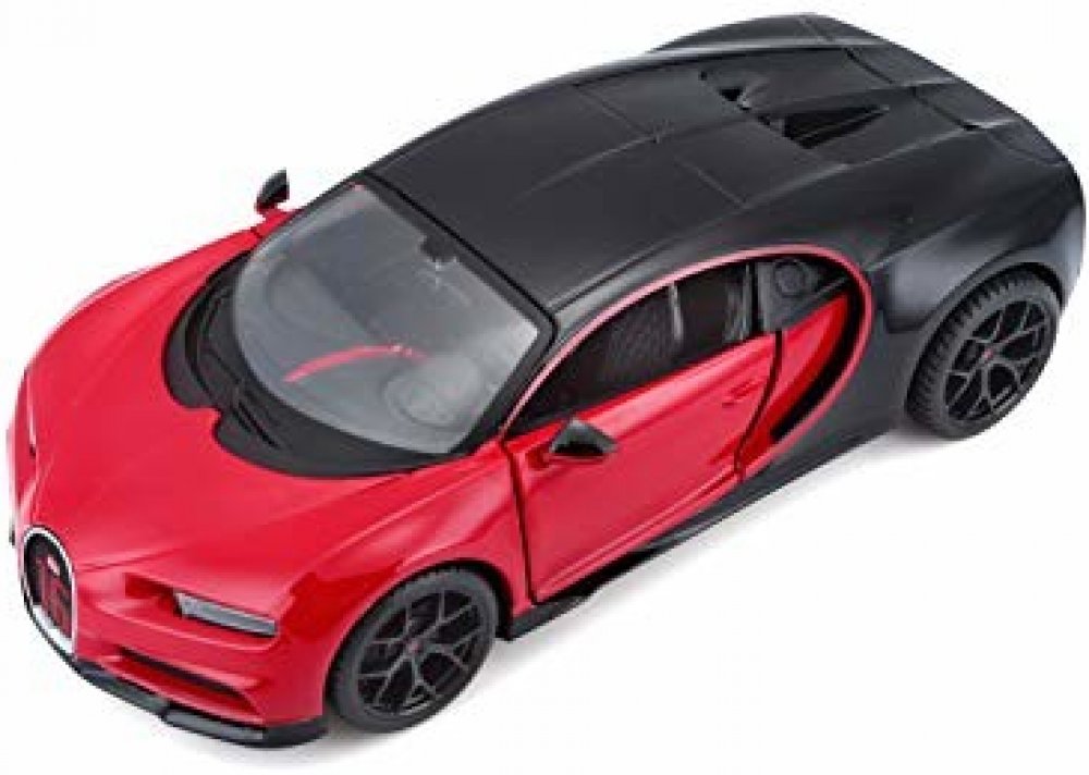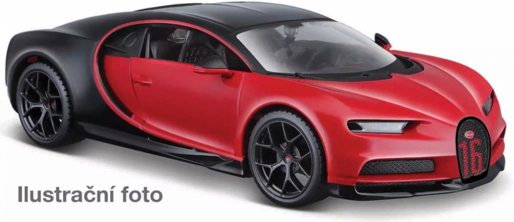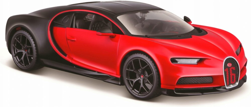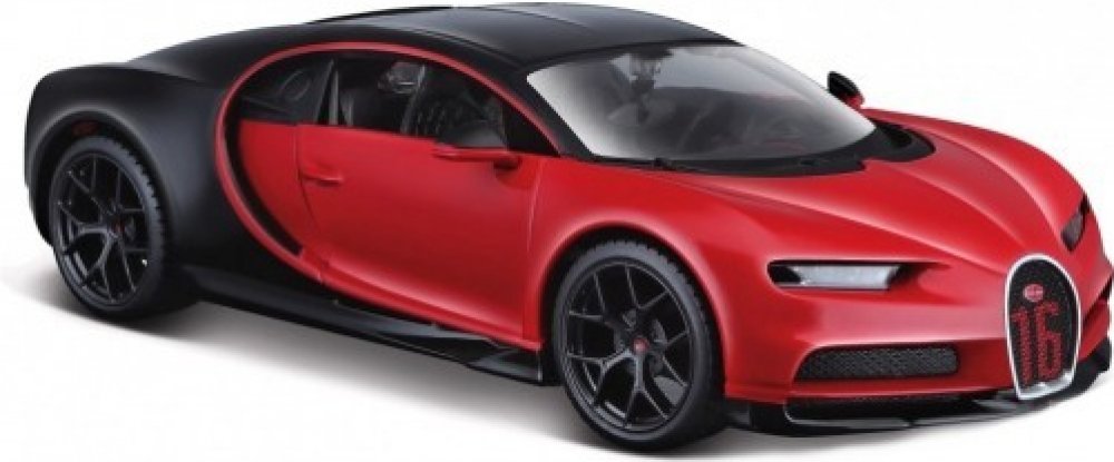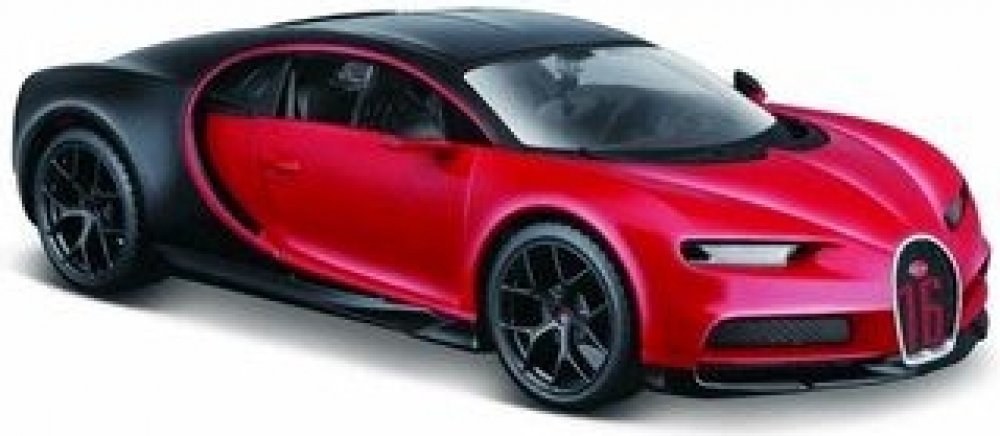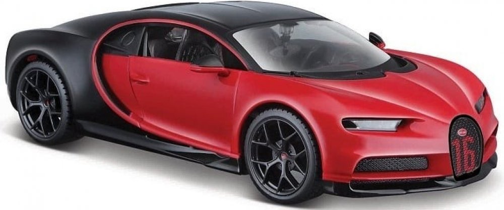 Kovový model auta 1:24 Maisto 31524 Bugatti Chiron Sport nejen pro sběratele. Model je v detailním provedení a má otevíratelné dveře. Barva modelu je červeno-černá a je přibližně 19 cm velký.