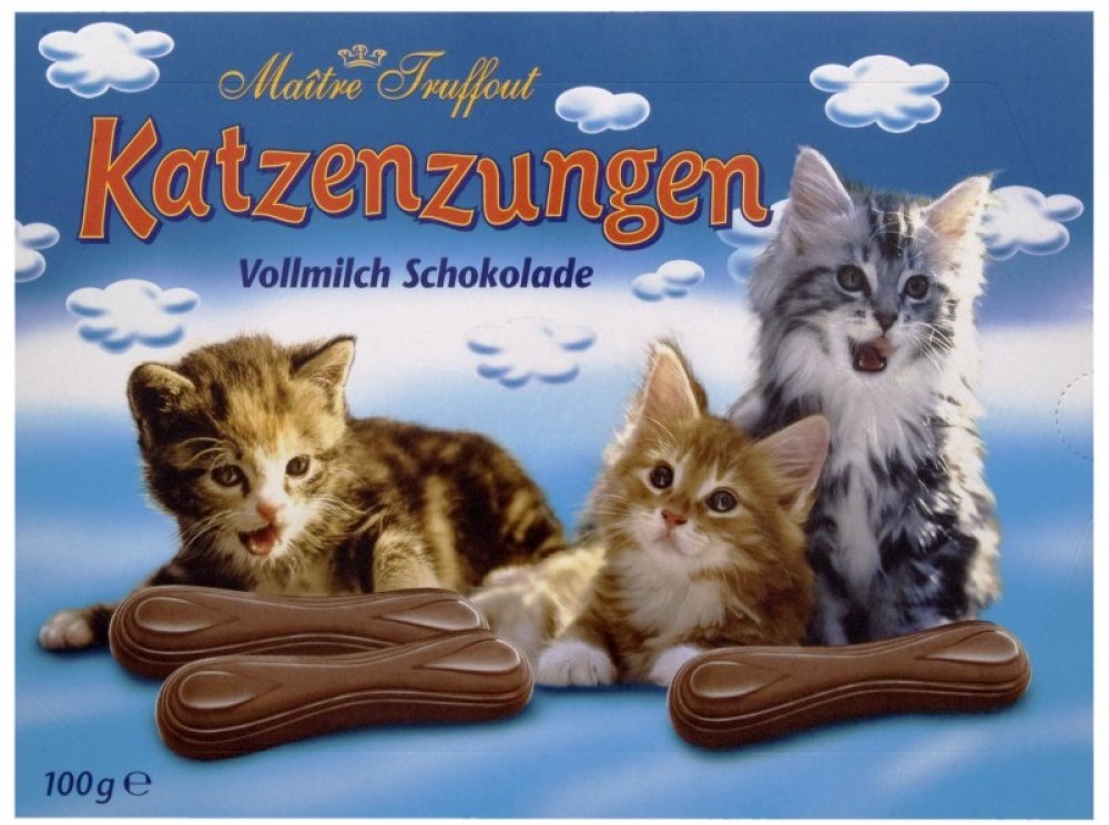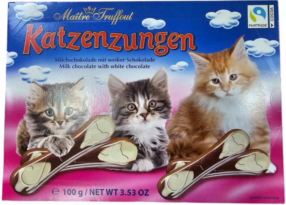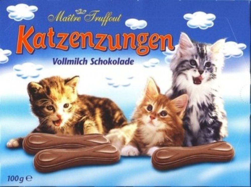 Také jste jako děti rádi mlsaly kočičí jazýčky? Jsou stále stejně dobré, vaše děti je také budou milovat. Tenké plátky čokolády jsou stále ve tvaru kočičího jazýčka. Uložené do obalu s roztomilými kočičkami se staly stálicí mezi dětskou čokoládou