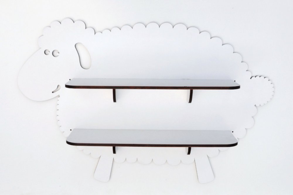 Dřevěná dětská polička s vyřezaným motivem ovečky rozveselí dětský pokojíček.
