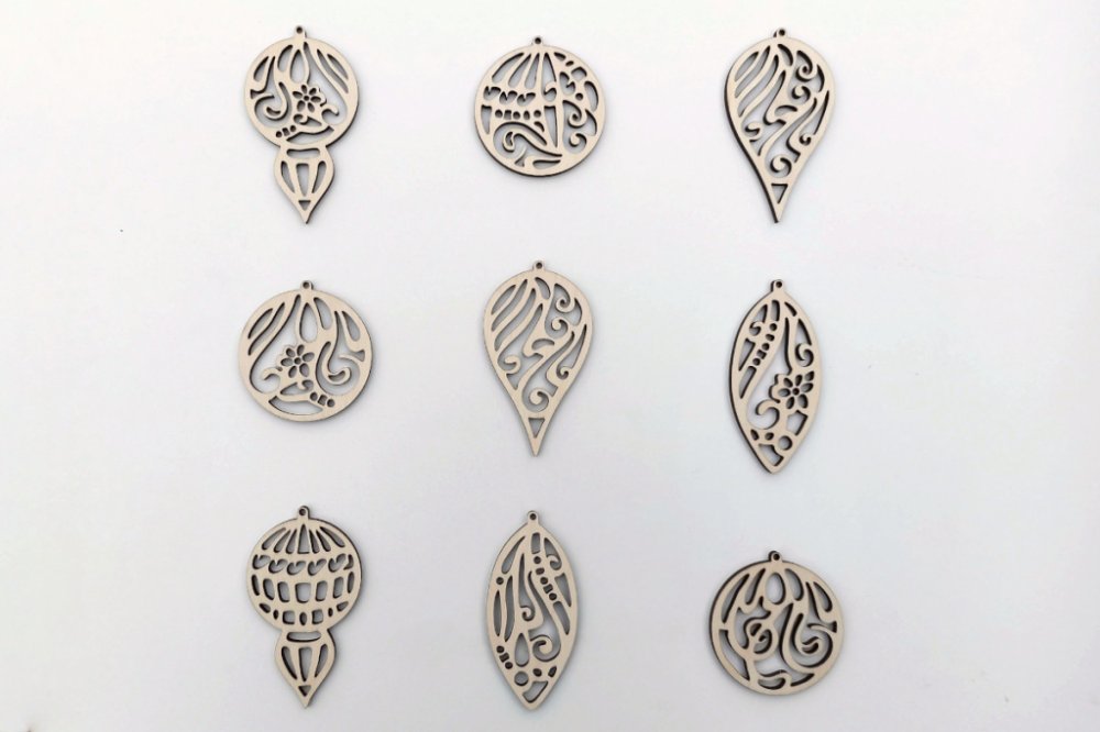 Dřevěné vánoční ozdoby - sada CURL- 9 ks