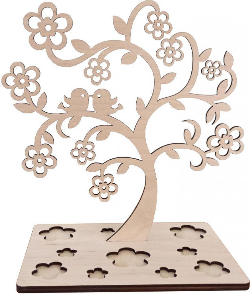 V podstavci jsou vyřezané lístky pro odkládání prstýnků a drobných náušnic.