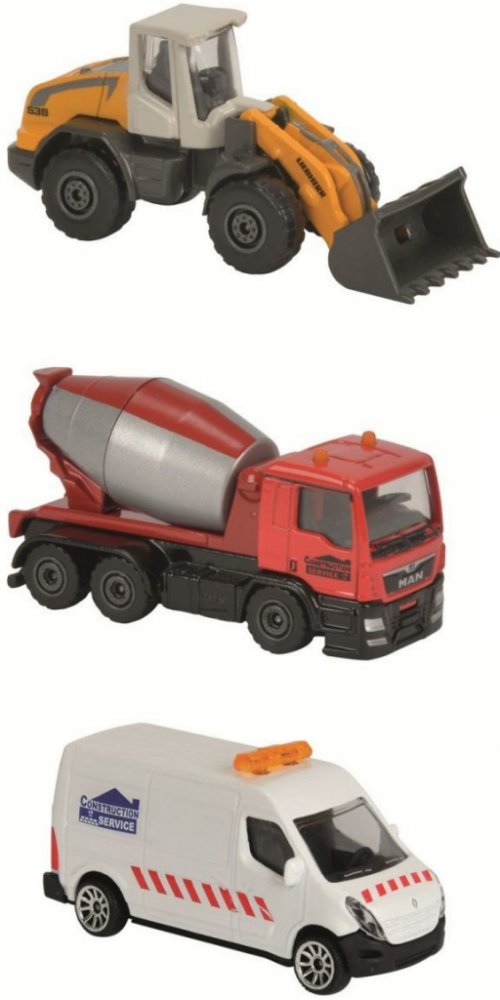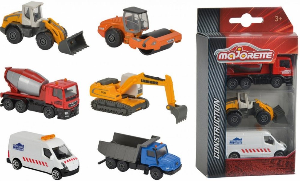 Majorette Autíčka kovová stavební 3 ks Míchačka dodávka nakladač