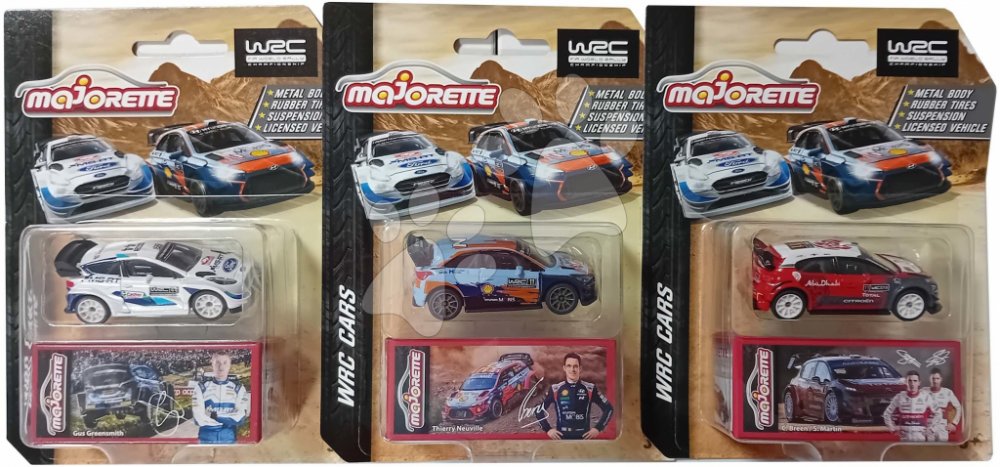 Kovové autíčko na volnoběh v oficiální licenci WRC. Gumové pneu. Součástí je sběratelský box s obrázkem originálního auta a jméno a podpis řidiče. 3 druhy. Baleno na kartě. Dětská autíčka, to jsou hračky, které potěší malé i velké. Autíčka (angličáky, modely aut) zajisté potěší nejen malé děti, ale i dospělé. Vždyť koho by krásný model auta nefascinoval? Rozměry balení (š v h): 14 x 18 x 5cm Rozměry dětské hračky (d): 7,5cm Materiál: kov + plastové části Varianty provedení: Ford, Citroen, Hyundai Obsah balení: auto, krabička Cena je uvedena za 1 balení - sadu hračky Hračka je vhodná pro děti od 3 let Pokud máte zájem o konkrétní druh nebo barvu výrobku, specifikujte to, prosím, do poznámky v objednávce.