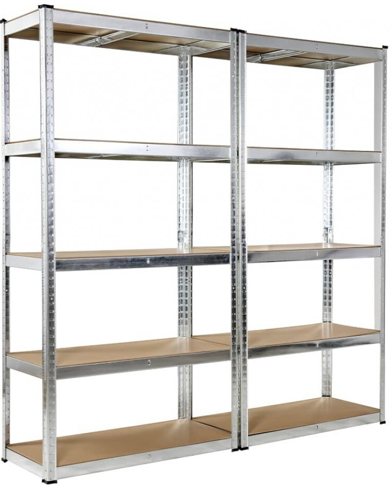 Výhodné balení = 2x regálový systém 180x90x40 cm s 5 HDF policemi a s nosností 175 kg na polici. Díky tomuto cenově zvýhodněnému balení nakoupíte pozinkové policové regály za nižší cenu než při nákupu jednotlivě. Balení 2 kusů kvalitních kovových regálů je dostupné ihned!Zásuvný bezšroubový kovový regál se 4 dřevovláknitými HDF policemi o rozměru 180 x 90 x 40 cm je ten nejdostupnější a nejvýhodně...