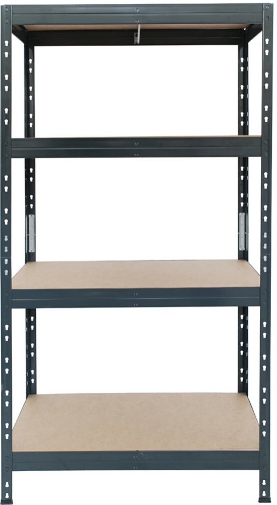 Bezšroubový odolný policový regál s HDF policí se používá v obchodech, garážích, skladech, sklepech a v domácnostech. Rozměry kovového regálu jsou (VxŠxH): 180x90x45 cm (1800x900x450 mm) a nabízí zátěž až 250 kg na jednu polici. Doporučujeme ukotvit regál o stěnu v případě, že chcete využít jeho maximální nosnost. Skutečný rozměr regálu se dle platné ČSN může z důvodu výrobní odchylky lišit o max. +/- 5%. Pro snazší přehlednost uvádíme velikost v zaokrouhlených rozměrech.