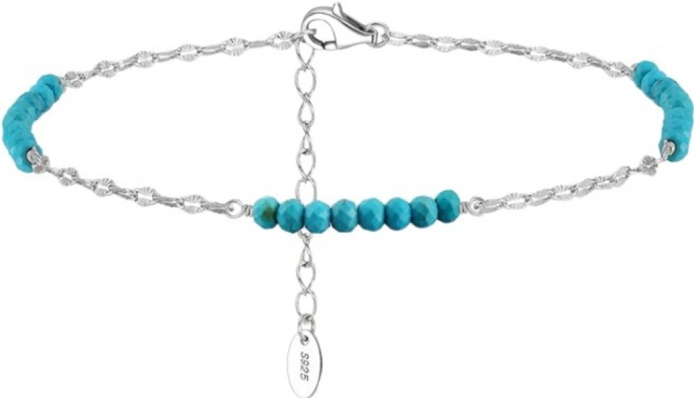 Stříbrný náramek SHANNEN je ztělesněním letní elegance a jemnosti. Vyroben z kvalitního stříbra 925/1000, tento šperk zaujme svým originálním designem s drobnými tyrkysy, které dodávají náramku nádech exotiky a svěžesti.