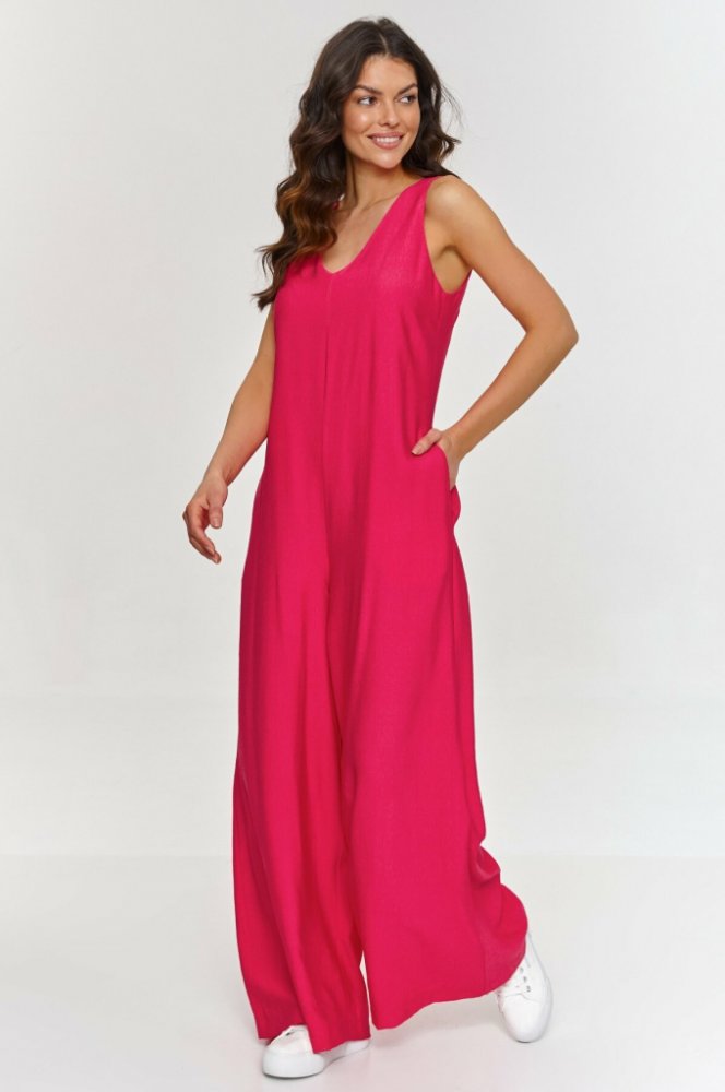 Stylový overal těšící oko každé ženy hledající něco moderního! Tento model vyniká svým jednoduchým V výstřihem, který mu dodává eleganci a ženský šmrnc. Zároveň hezky zdůrazňuje postavu a opticky prodlouží linii dekoltu. Je šik a velmi jemný. Široké nohavice a volnější střih zaručují pohodlnost overalu a jeho originalitu. Overal se zapíná pomocí zipu, což velmi usnadňuje jeho oblékání. Boční kapsy jsou zase velmi praktickým prvkem. Dodatečným plusem tohoto kousku je velmi příjemný a vzdušný materiál, což z něj dělá perfektního společníka pro teplé dny. Díky jednoduchému, ale maximálně efektnímu střihu se overal hodí pro každodenní ležérní stylizace, ale neurazí ani při více formálních událostech jako jsou pracovní schůzky nebo večerní akce. Můžete jej zkombinovat s bílými teniskami a nebo také vysokými podpatky pro elegantnější variantu. Vybírat můžete ze stylových pěti barev!