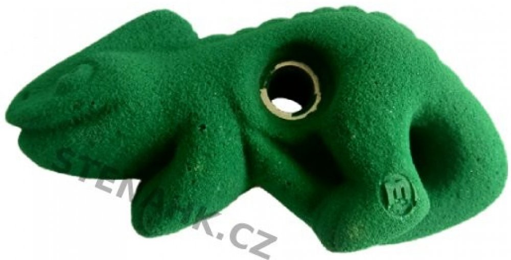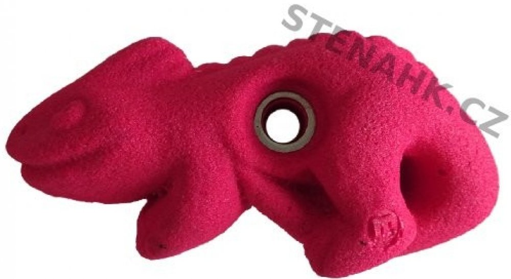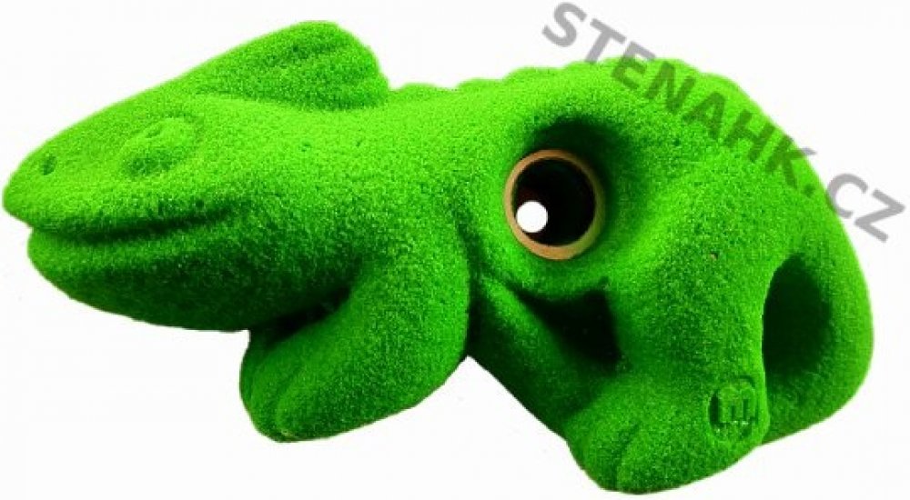 Makak lezecký chyt Chameleon L Dětský lezecký chyt ve tvaru chameleona ve velikosti L . Chyt je vyroben z polyesterové pryskyřice a je pro větší bezpečnost opatřen bezpečnostní pružinou. Dostupný v šesti barvách. V této velikosti je možné objednat také lezecký chyt ve tvaru mamuta . Parametry produktu Makak lezecký chyt Chameleon L : Barva: žlutá, červená, zelená, modrá, oranžová, růžová Materiál: polyesterová pryskyřice Velikost: L Certifikace: EN 12572-3 , EN 71-3