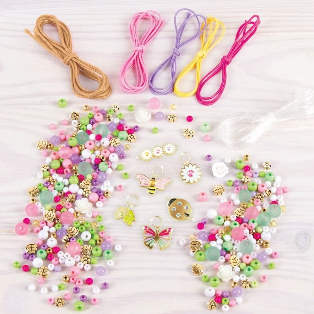 Balení obsahuje: 5 barevných šňůr (4,5m), elastickou šňůru (6m), korálky, přívěsky s krystaly SWAROVSKI, instrukce