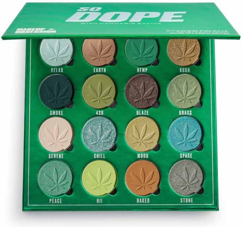 Makeup Obsession So Dope With Cannabis Sativa. Makeup Obsession přichází s paletkou očních stínů, kterou si prostě zamilujete - So Dope With Cannabis Sativa! Krása ukrytá v zemitých tónech! * 16 odstínů, * kombinuje matné a třpytivé oční stíny, * vysoká pigmentace, * vyživující složení. Použití: Oční tíny nanášejte na víčka pomocí aplikátoru nebo prstů. Světlé odstíny používejte pro rozjasnění vni