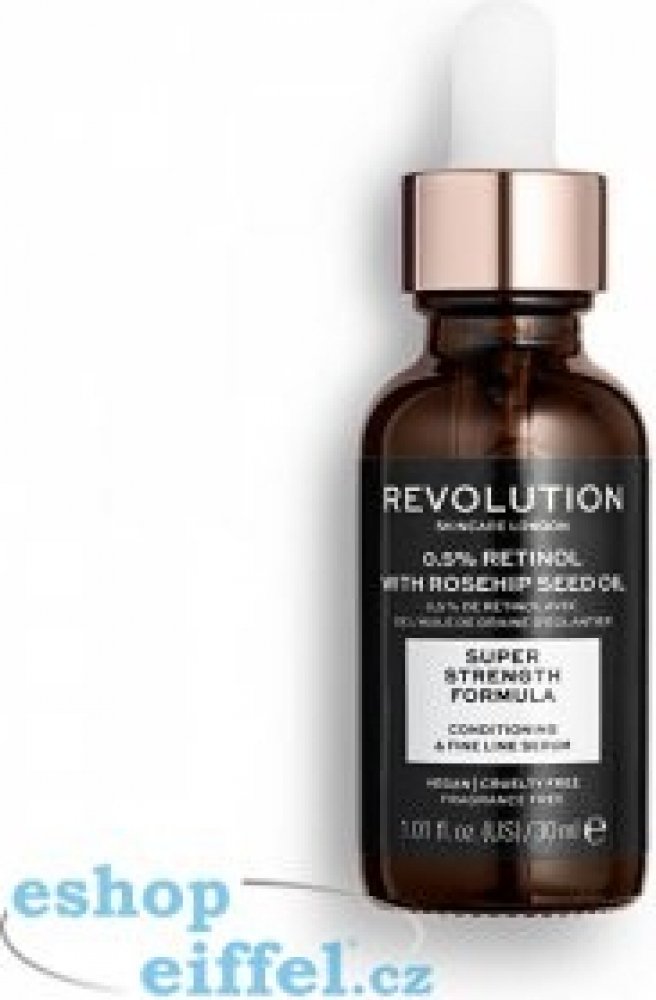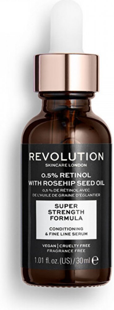 Zoznámte sa s hydratačným sérom proti starnutiu pleti Revolution Skincare 0,5 % Retinol s olejom zo šípkových semienok, ktoré vyhladí vašu pleť už po prvej aplikácii! Sérum obsahuje 0,5 % retinolu, jednu z nejúčinnějších složek proti starnutiu. Zvyšuje produkciu kolagénu a elastínu, stimuluje obnovu buniek a vyrovnává tón pleti. Bolo skombinované so šípkovým oleom, ktorý pleť vyživuje a hydratuje....