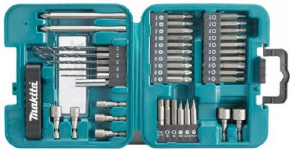 MAKITA D-58877 sada bitů a vrtáků s šestihrannou stopkou - 42ks Složení: vrtáky HSS těchto průměrů: 2,5 / 3,0 / 4,0 / 5,0 / 6,0 mm, všechny s uchycením 1/4" šestihran magnetický držák bitů 1/4 " adaptér 1/4 " na 1/4 " praktický držák bitů s možností zavěšení na opasek kalhot nástrčkové klíče délky 38 mm těchto průměrů: 5.0 / 6.0 / 7.0 / 8.0 / 10.0 / 11.0 / 13.0 mm bit Ph2/100 mm bit Pz2/100 mm bity Torx 1/4 " délky 45 mm (T10, 15, 20, 25, 27, 30, 40, 45.) bity imbus 1/4 " délky 45 mm (H3, H4,...