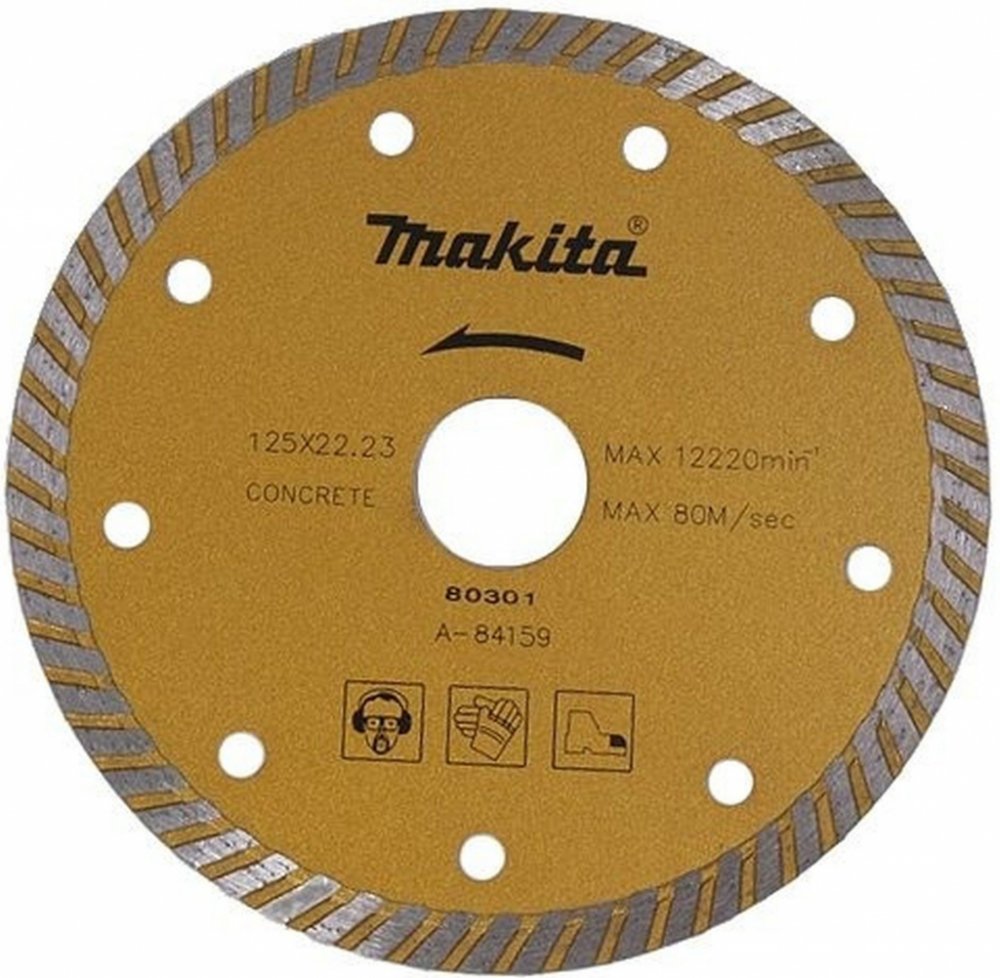 A-84159 - Makita - Kotouč brusný diamantový turbo 125x22,23mm Makita A-84159 - Příslušenství | Kotouče | Diamantové kotouče - Kotouč brusný diamantový turbo 125x22,23mm Makita A-84159Jednoduchý brusný diamantový turbo kotouč pro hrubé broušení betonu za sucha. Výška segmentu 7mm.