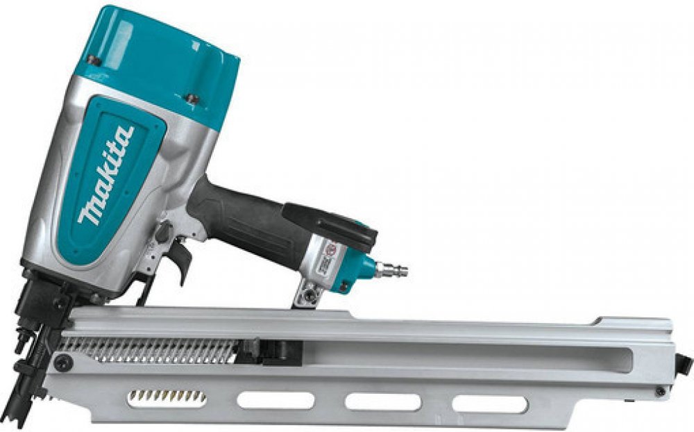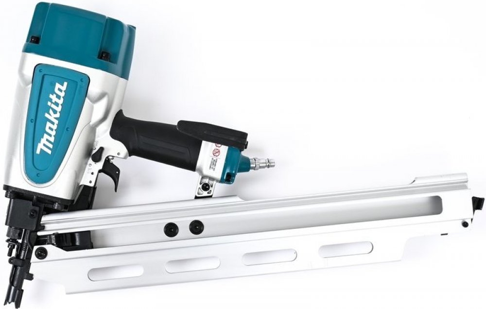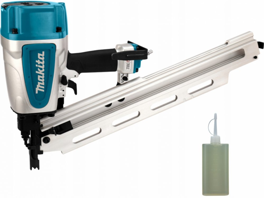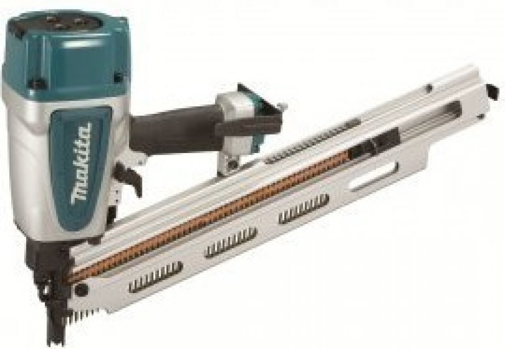 Pneumatická hřebíkovačka pro hřebíky s kulatou hlavou páskované v plastu pod úhlem 21°. Má možnost přepnutí režimu jednotlivého a sériového hřebíkování.