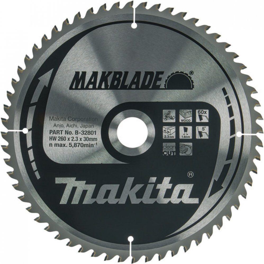 Pilový kotouč na dřevo pro pokosové, stolní a ponorné kotoučové pily Makita B-09020 MAKBLADE, 260x30mm, 60 zubů