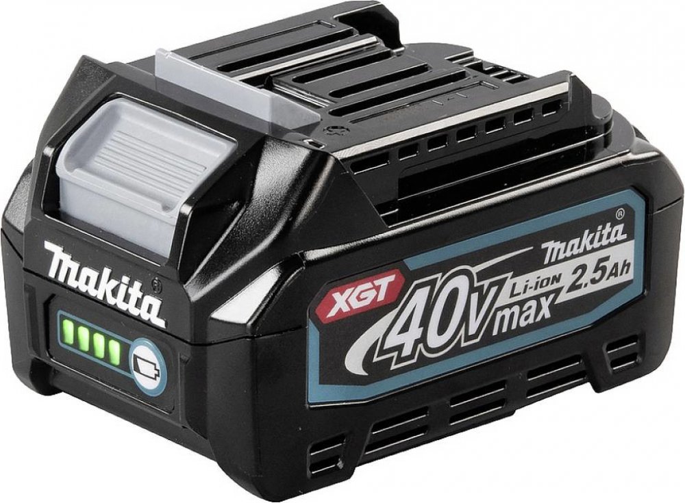 * Nové baterie XGT jsou speciálně navrženy pro náročné používání * Li-ion baterie řady XGT s max. 40 V a kapacita 2,5 Ah. * Nabíjení na 80% za 19 minut a úplné nabití za 28 minut pomocí nabíječky DC40RA. * Čtyři zelené LED diody ukazují zbývající kapacitu baterie. * Kryt baterie je navržen pro náročné použití na staveništi a odpovídá standardu ochrany IP64. ► VÍCE VÝKONU * Série Makita XGT nastavuje nové standardy a rozšiřuje možnosti využití bezdrátových strojů, které byly dříve vyhrazeny pro stroje napájené ze sítě. 40 V max. * Třída doplňuje osvědčenou produktovou řadu 18 V LXT a nabízí uživatelům řešení, které zvládne obzvláště namáhavou práci. ► ROBUSTNÍ * Nové baterie jsou speciálně navrženy pro dodávání vyšších vybíjecích proudů. * To znamená, že odolávají požadavkům i v náročných podmínkách a neustále dodávají maximální výkon. * Vnitřní články baterie jsou ještě více chráněny proti prachu a vodě. * Vylepšené pouzdro tlumící nárazy činí baterie ještě robustnějšími a bezpečnějšími. ► DIGITÁLNÍ KOMUNIKACE * Digitální komunikace mezi baterií, strojem a nabíječkou zajišťuje, že všechny tři komponenty fungují optimálně. * S touto digitální komunikací lze v závislosti na aplikaci dosáhnout znatelně delší doby chodu na jedno nabití baterie.