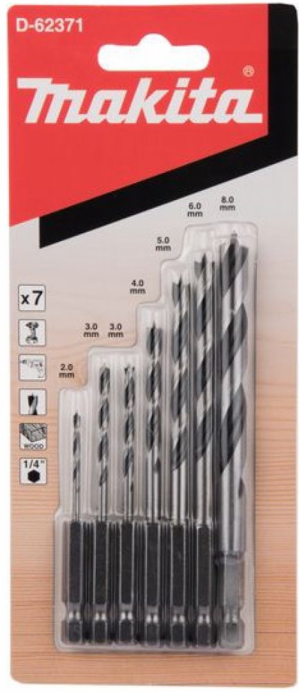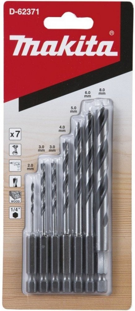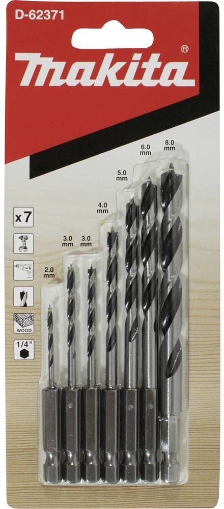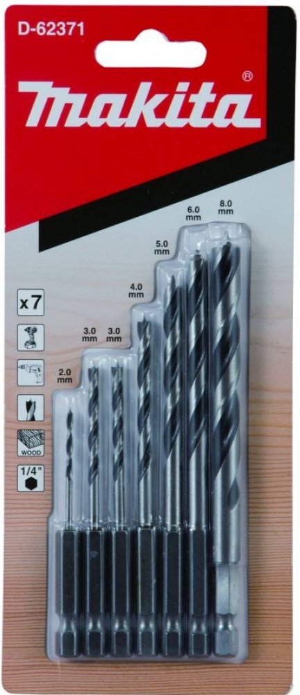 Makita D-62371 sada spirálových vrtáků do dřeva 2 mm, 3 mm, 4 mm, 5 mm, 6 mm, 8 mm 1/4 (6,3 mm) 1 ks