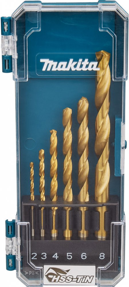 * 6dílná sada vrtáků do kovu Makita. * Vrtáky jsou broušeny pod úhlem 138 stupňů a opatřeny povlakem TiN. * Díky tomu mají vrtáky vyšší houževnatost, řezné plochy jsou lépe chráněny a mezi vrtákem a materiálem dochází k menšímu tření. * To udržuje vrtáky chladnější a umožňuje udržení vyšších rychlostí vrtání.