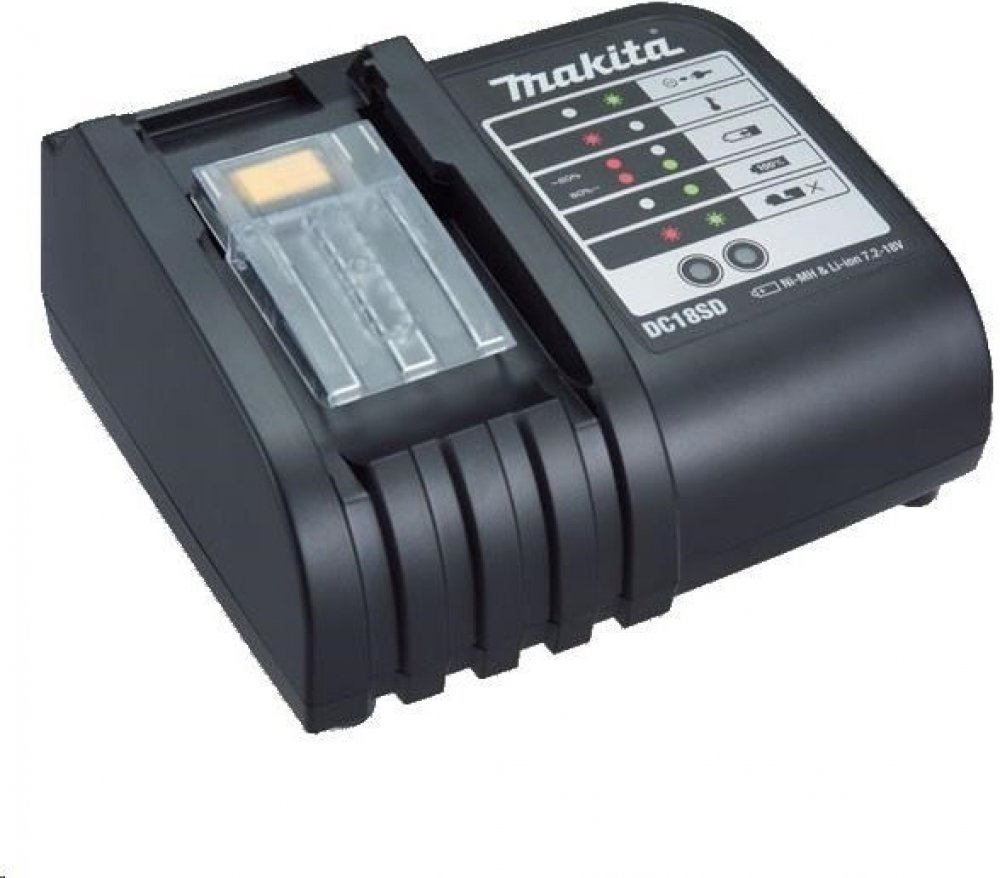Nabíječka Makita LXT DC18SD 7,2-18V je určena pro nabíjení lithium-iontových akumulátorů řady Makita LXT. Tento model je kompatibilní s akumulátory o napětí od 7,2 V do 18 V. Nabíječka je vybavena digitálním indikátorem stavu nabití, který poskytuje jasný a snadno čitelný údaj o aktuálním stavu nabití baterie, což umožňuje uživatelům efektivně plánovat práci bez zbytečných přerušení.