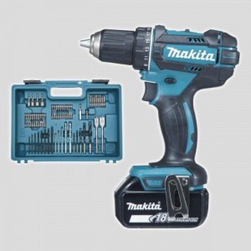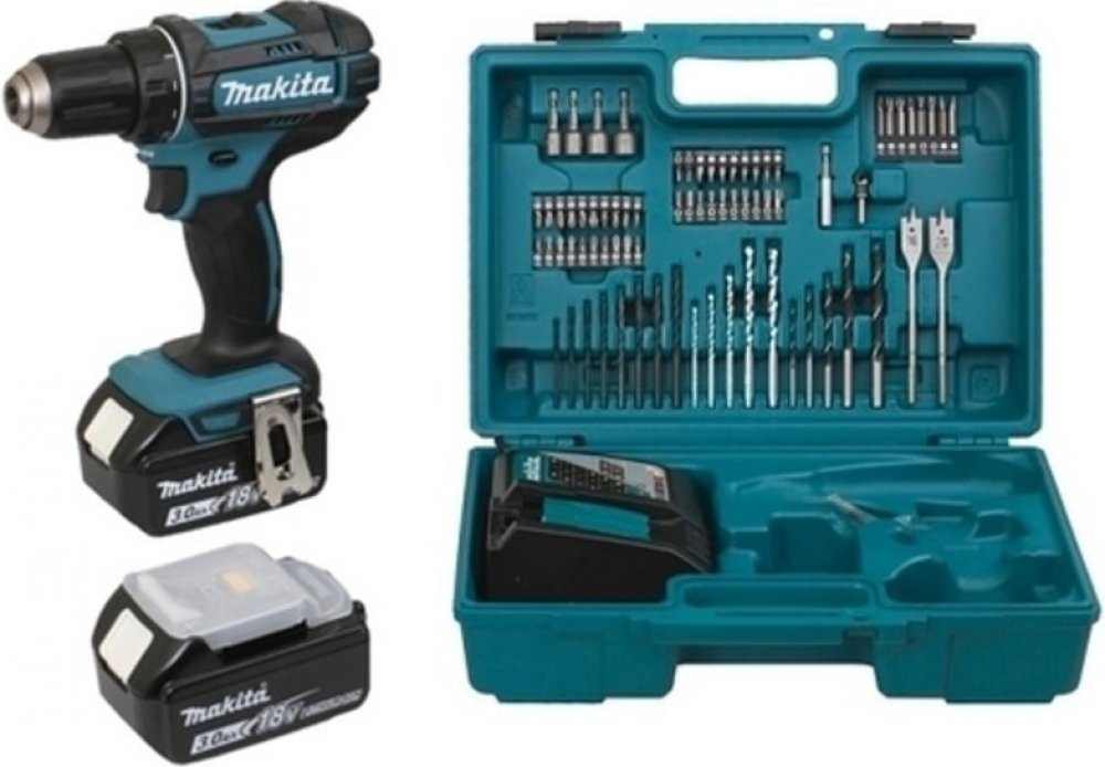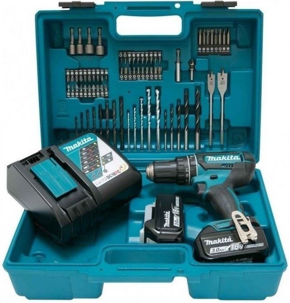V přepravním kufru se dvěma akumulátory BL1830, příslušenstvím a nabíječkou