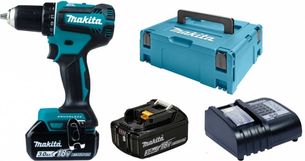 Balení obsahuje 2x akumulátor BL1830B (18 V / 3,0 Ah) a nabíječku DC18SD!