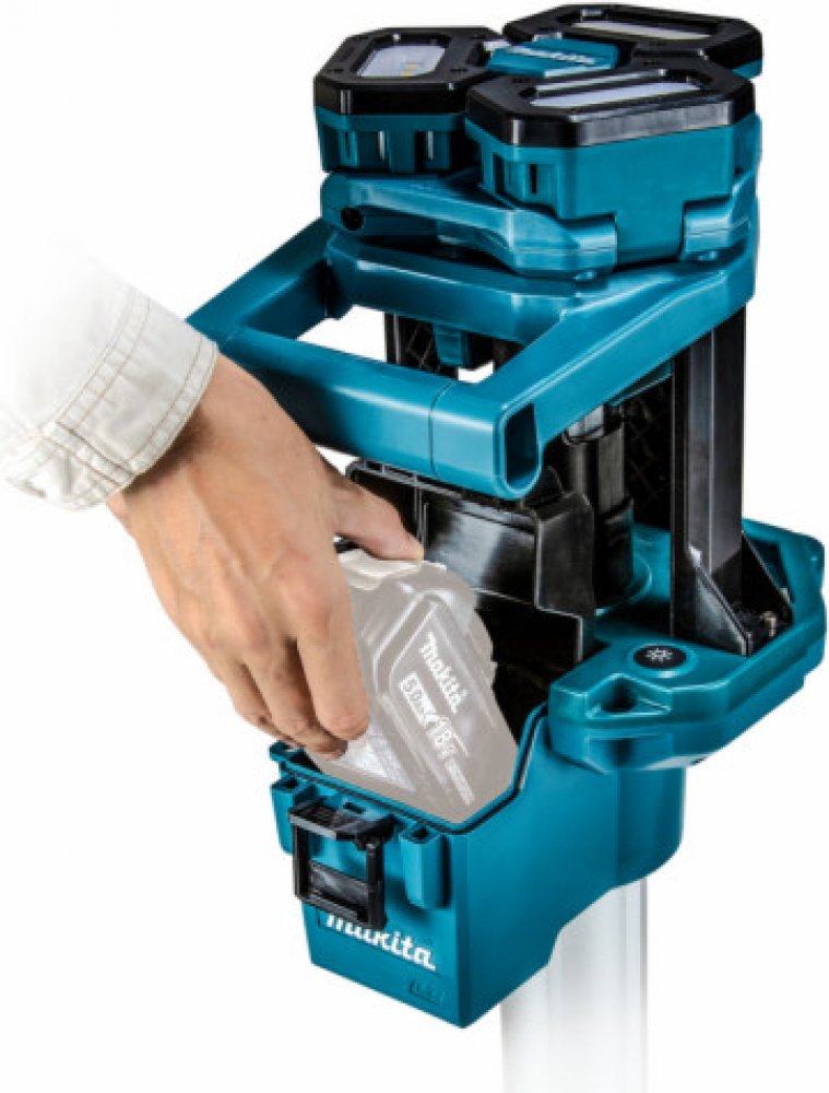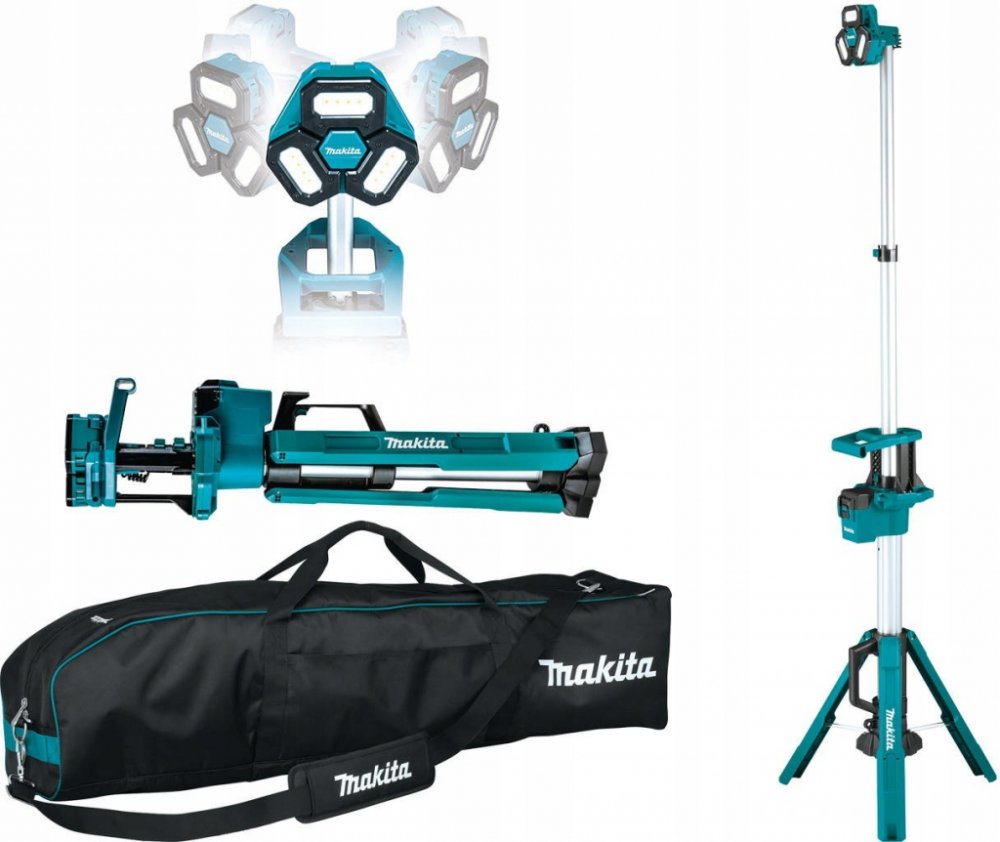 Univerzální LED svítilna se světleným tokem až 3.000 lumenů. 12 LED diod dodává přirozené bílé osvětlení podobné dennímu světlu. Možnost nastavení svítilny na osvětlení bodu nebo plochy. Možnost nastavení 3 intenzit svícení 900/1700/3000 lm. Možnost nastavení různých úhlů jednotlivých svítilen. Velmi dlouhá výdrž na jedno nabití akumulátoru - při použití BL1850B/900 lm vydrží svítit 10 hodin. Teleskopické provedení umožňující nastavení výšky 1144 - 2240 mm. Jednoduché složení do transportních rozměrů 1.000 mm. Odolné vůči prachu i vodě - IP55. Upozornění uživatele na nízkou kapacitu akumulátoru. Možnost ukotvení nohou. Možnost uzamčení akumulátoru - zámek není součástí dodávky. Dodává se bez akumulátoru a nabíječky.