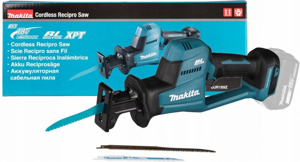 DJR189Z také podporuje beznástrojovou výměnu pilek, což urychluje a zjednodušuje práci. Ergonomicky tvarovaná pogumovaná rukojeť poskytuje pevný a pohodlný úchop, zatímco LED osvětlení pracovní plochy zajišťuje dobrý přehled o místě řezu i za horších světelných podmínek. Tento model se dodává bez akumulátorů a nabíječky, což umožňuje volbu akumulátoru dle preferencí uživatele.