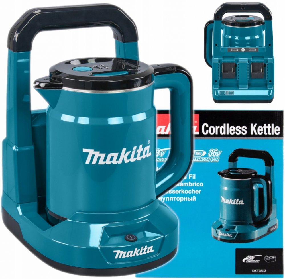 Aku rychlovarná konvice fungující na dvy akumulátory Li-ion LXT 18V. Nabízí možnost velmi rychlého ohřevu až 0,8 l vody. Velmi odolná konstrukce stroje. Ochrana proti možnosti vylití vody. Automatické vypnutí v okamžiku dosažení bodu varu. Světelný indikátor varu. Pojistka proti ohřevu na sucho. Jednoduše uvolnitelné víčko s protiprachovou úpravou. Dvojitý plášť konvice - nerez uvnitř/plast venku....