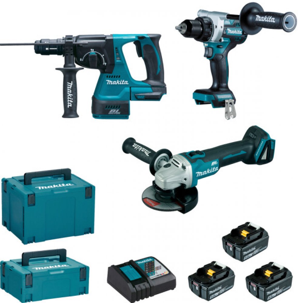 Součástí sady jsou tři akumulátory BL1850B, které zajišťují dlouhou provozní dobu a rychlé nabíjení díky rychlonabíječce DC18RC. Všechny nástroje a příslušenství jsou úhledně uspořádány ve dvou praktických kufrech Makpac, které zahrnují speciální vložky pro bezpečné uložení nástrojů.